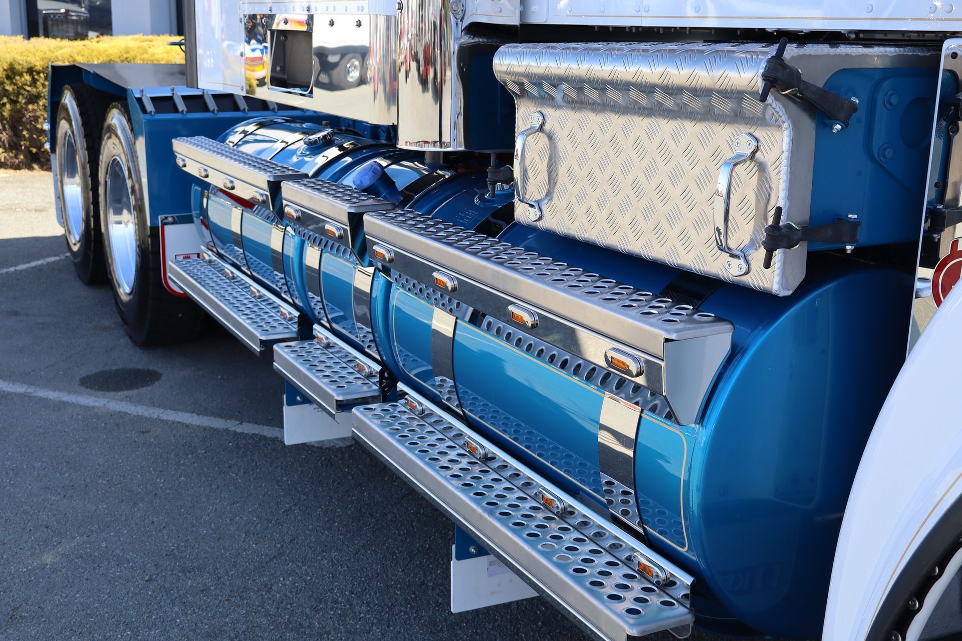 These two caught my eye all day. The blue and all of that gorgeous stainless steel just works. So good to see these two young blokes steering these rigs with so much pride in them. A real credit to you blokes and the way you go about it. We love knowing our work is out on the road being shown off but also looked after!