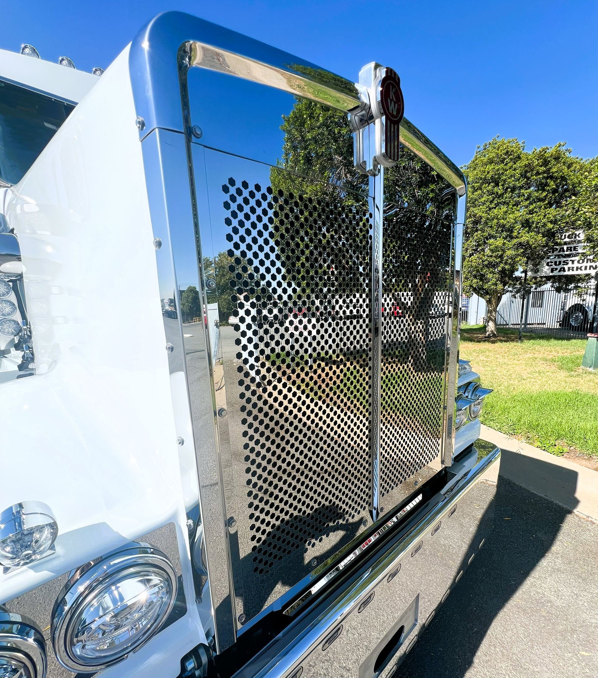 During this process we remove that standard grill and take the backing sheet off and replace it with stainless grill mesh for a stylish and protective finish. On this job we also added two more grill bars.